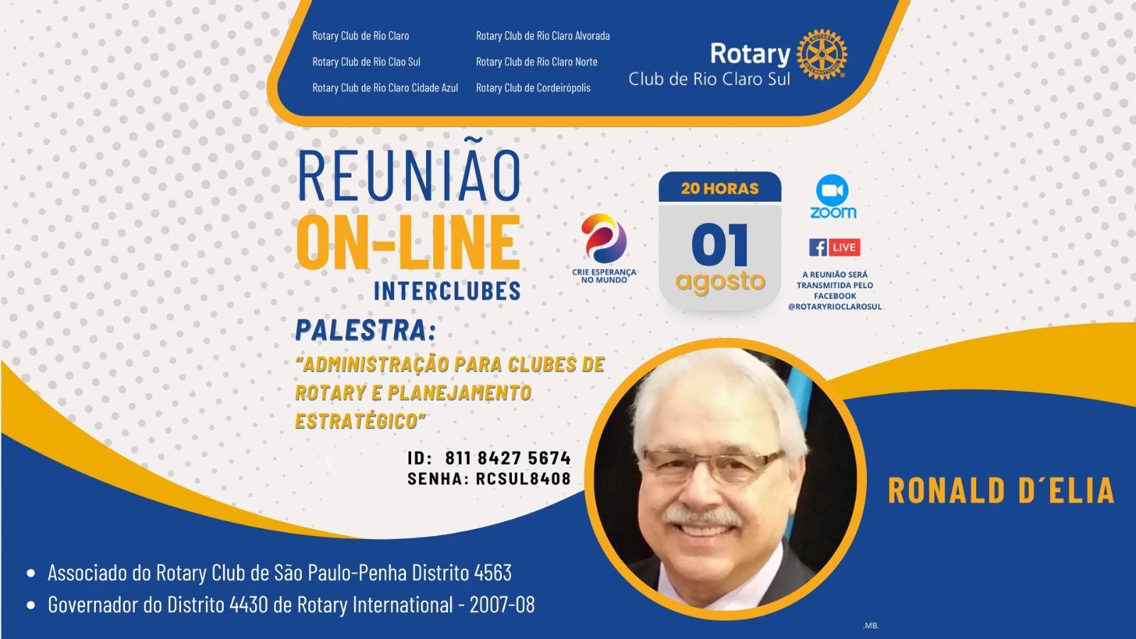 ROTARY CLUB DE RIO CLARO SUL COORDENA REUNIÃO INTERCLUBES VIA ZOOM
