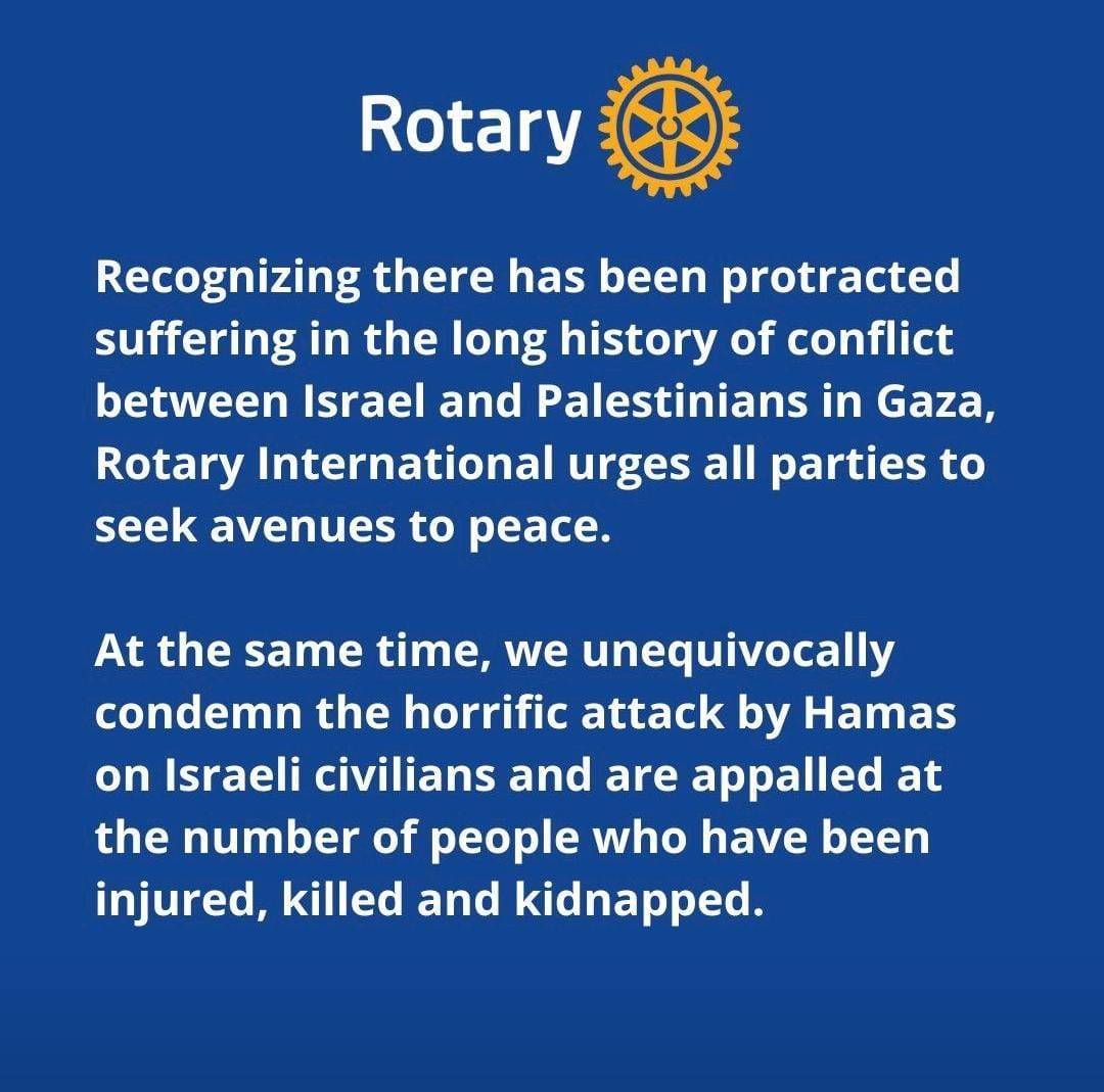 Declaração do Rotary em relação ao conflito em Israel e Faixa de Gaza #RotaryPelaPaz